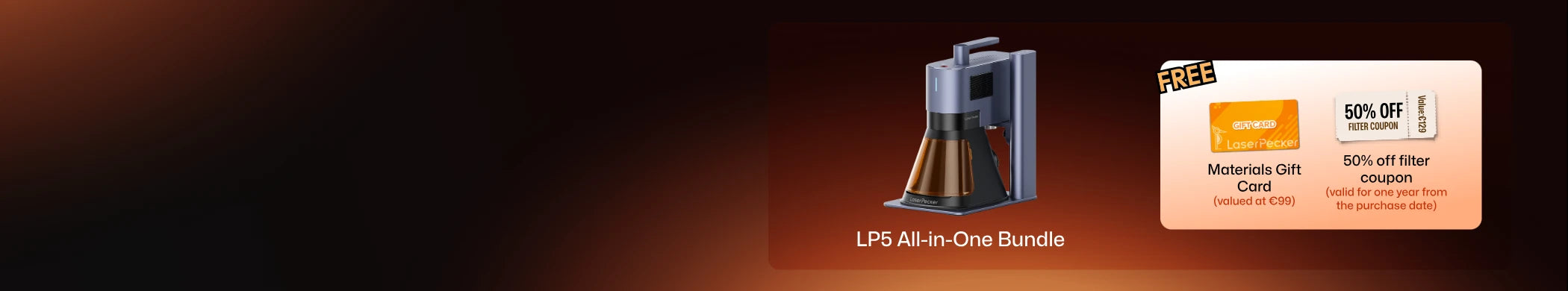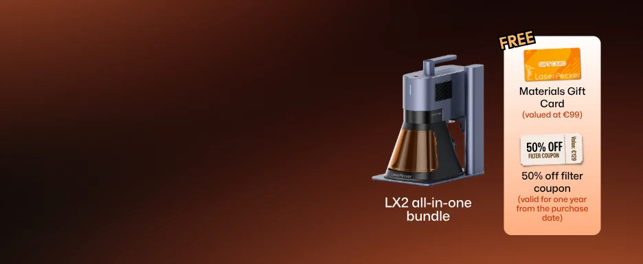 Black Friday Deal: Get the 20W dual-laser engraver for just €2549! 🚀 Buy an LP5 and get a €99 Materials Gift Card or grab the LP5 All-in-One and score a 50% off filter coupon (valid for 1 year)